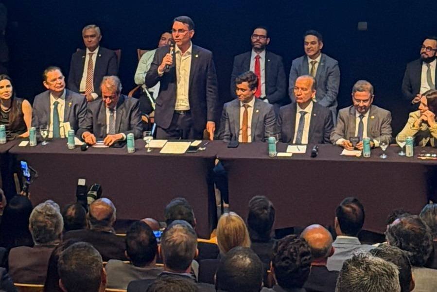 Durante o discurso, Flávio ainda voltou a defender o legado econômico do governo Jair Bolsonaro, citando o ex-ministro Paulo Guedes e a política de redução de impostos, argumentando que houve aumento de arrecadação sem elevação da carga tributária, mas com modernização e cortes.
