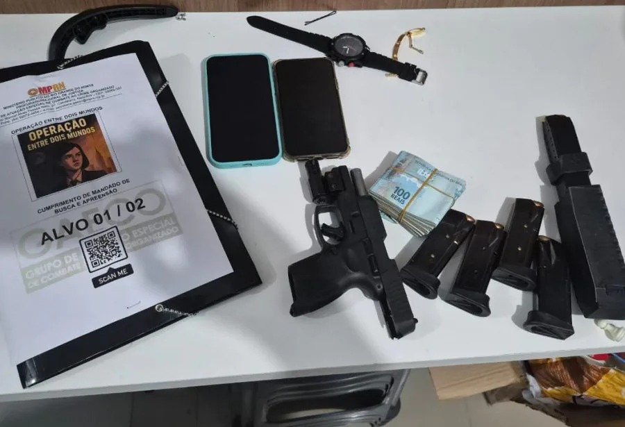 Além disso, as equipes encontraram cerca de R$ 9 mil em dinheiro, uma pistola, cinco carregadores e munições, materiais que serão incorporados às provas do inquérito.