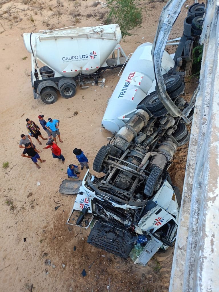 De acordo com informações divulgadas nas redes sociais, o veículo atravessou a barreira de proteção da ponte e caiu no leito seco do rio.
